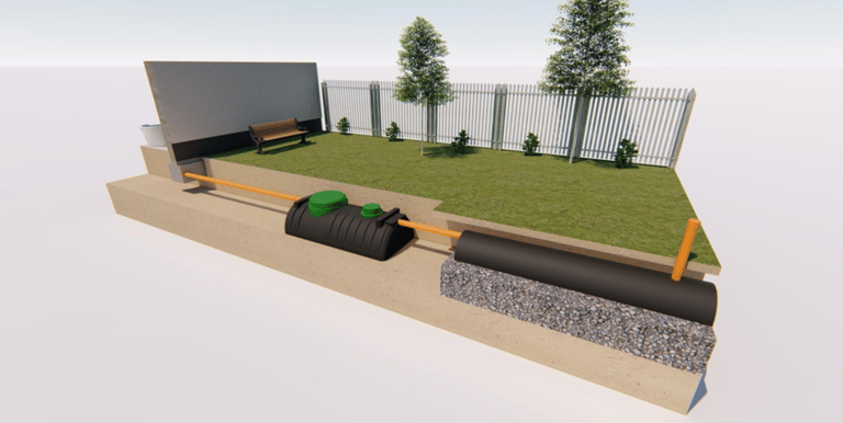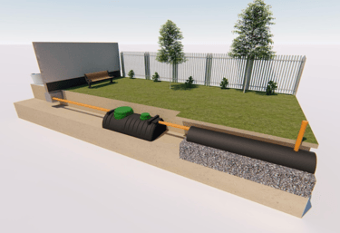 Lakossági szennyvíztisztító rendszer egy oldó medencéből, és egy szivárogtató alagútból, illetve elvezető csatornából és szellőztető rendszerből áll.